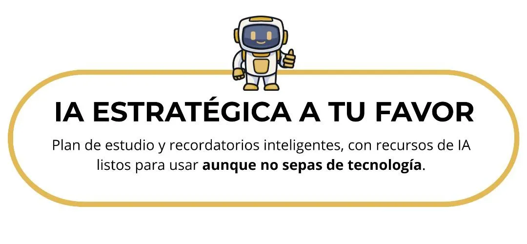Divides el estudio en pasos simples (diagnóstico, planificación, ejecución y repaso) para que sepas siempre qué hacer cada día.